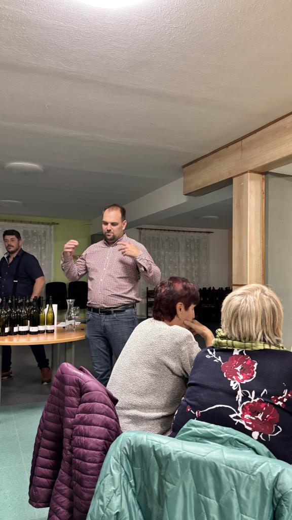 V pátek 14. listopadu 2025 se konala ve velké zasedací místnosti OÚ ochutnávka vín. Návštěvníci ochutnali vzorky bílých a červených vín ve spojení s různými pochutinami a poznali tak netradiční chutě. Příjemný večer provázelo povídání zkušeného vinaře. Atmosféru zachycují fotografie z akce.
