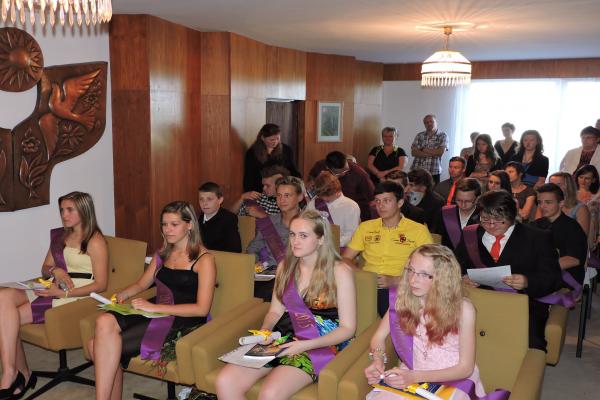 Fotografie ze slavnostního předávání vysvědčení žákům 9.třídy ZŠ Záhoří