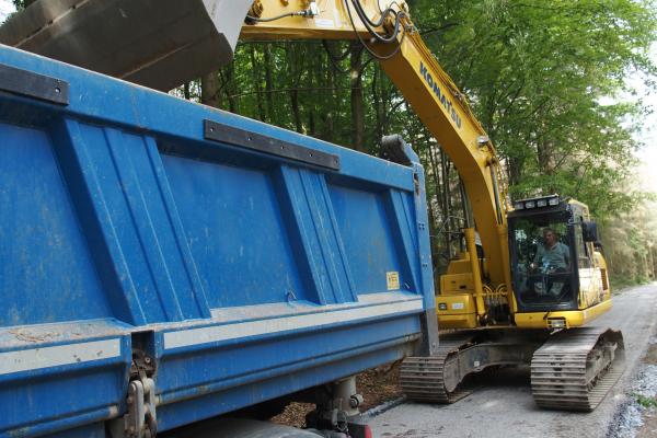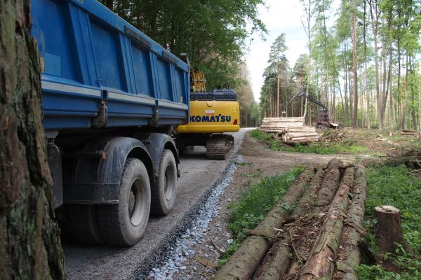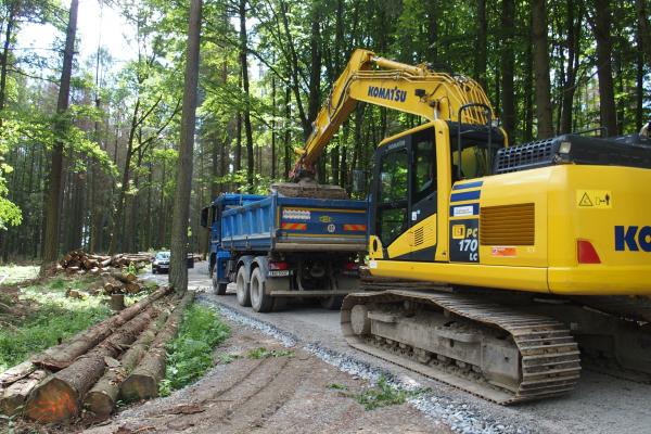 Práce na opravě lesní cesty